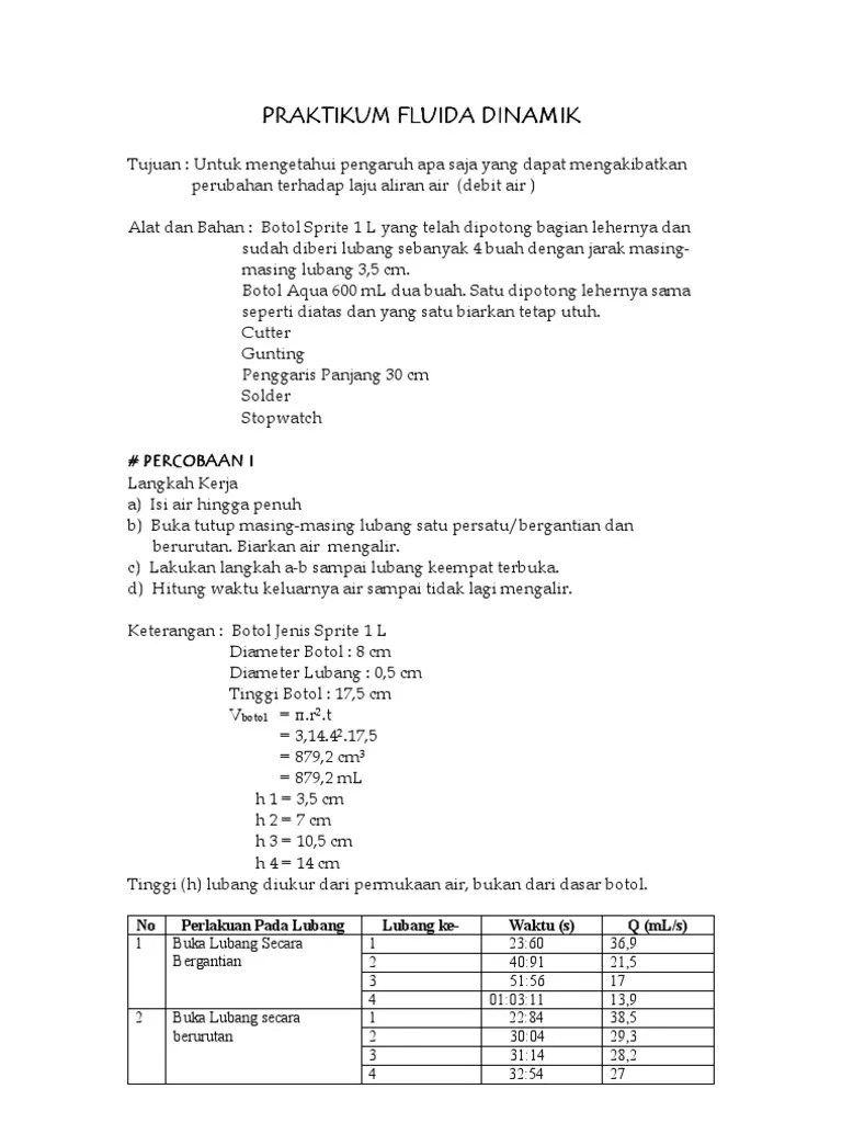 Contoh Laporan Hasil Praktikum Fluida Dinamis Gratis / Contoh Laporan Praktikum Fluida Statis Dan Dinamis - Laporan hasil praktikum fisika mebuat sirkulator air.
